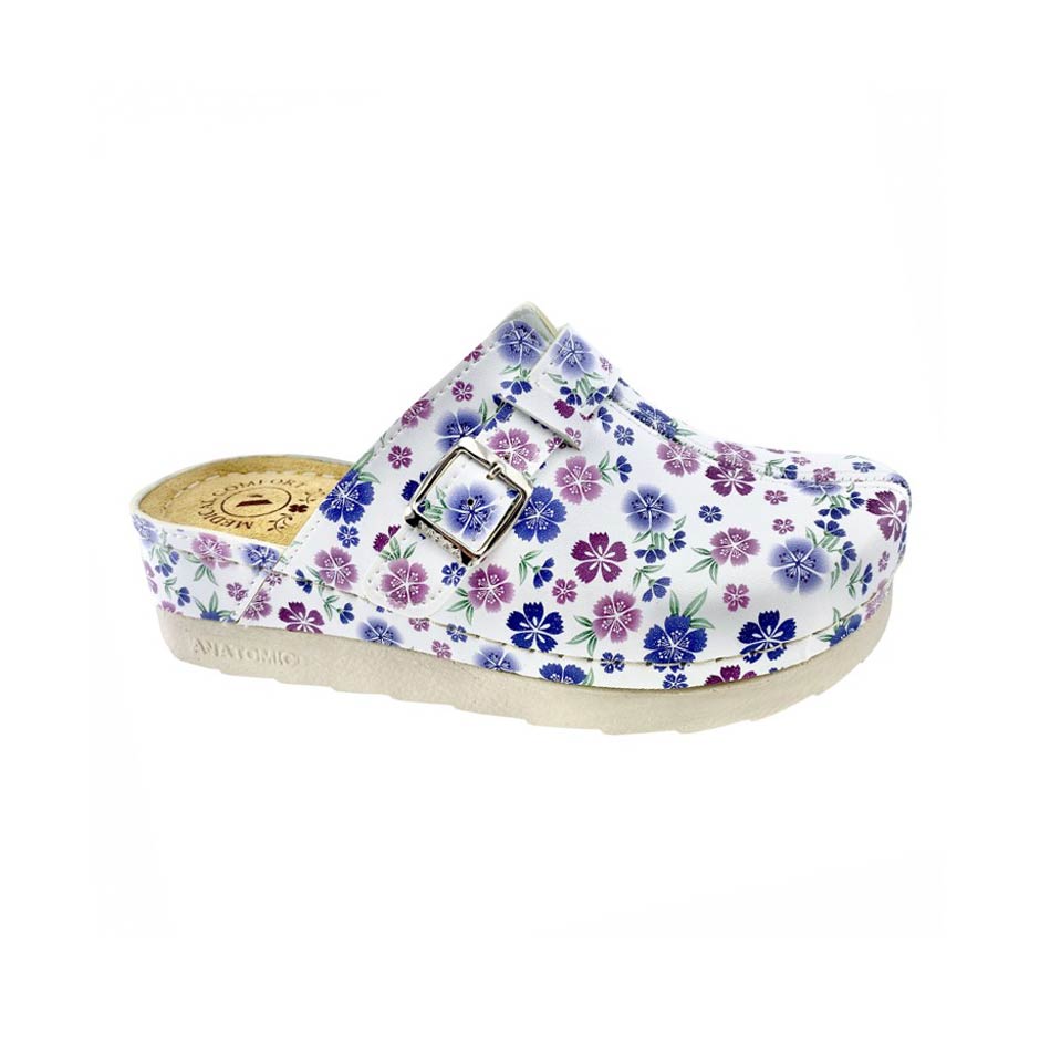 Anatomski ženski natikači beli – vzorec s cvetlicami